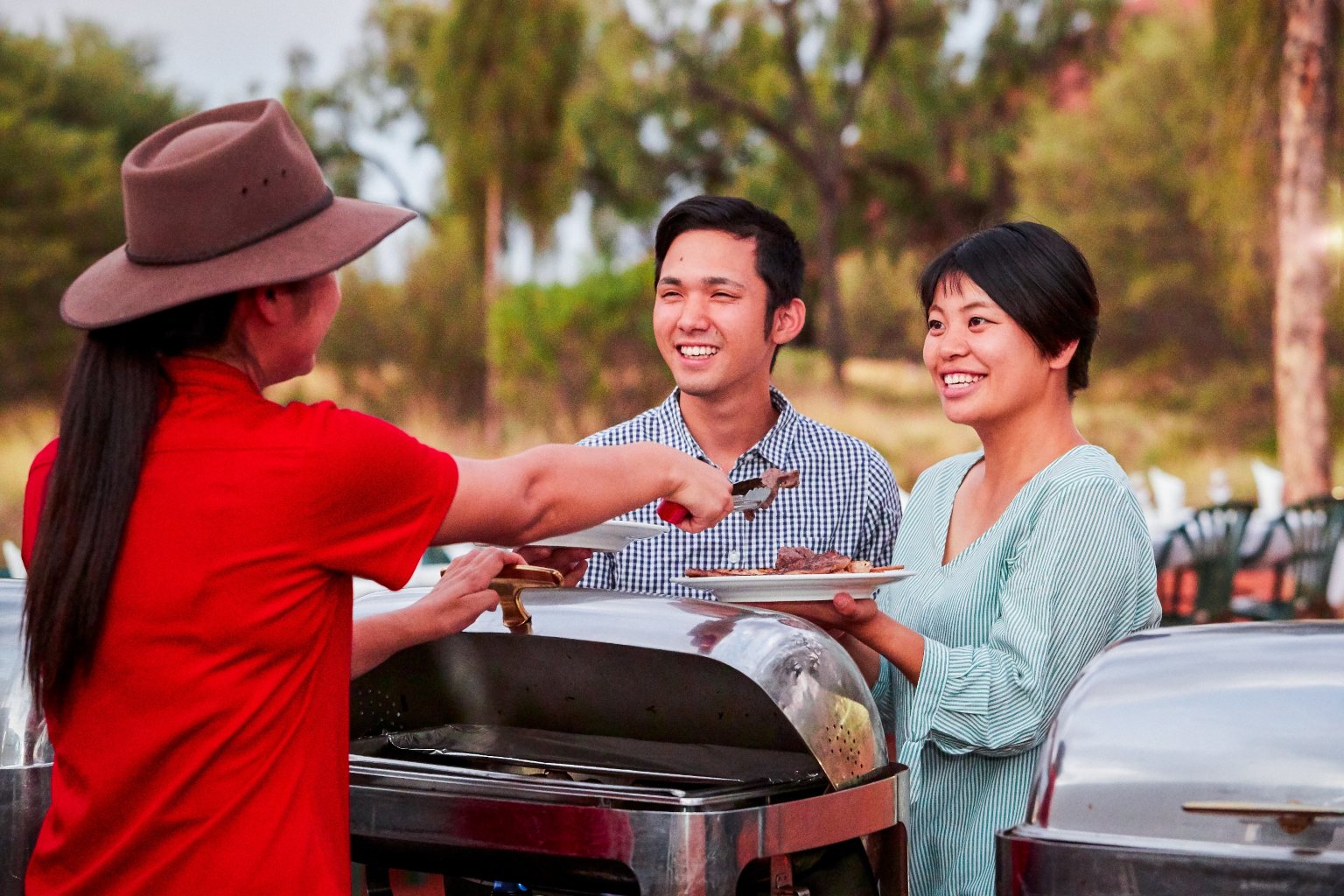 ウルルの麓の特設会場でバーベキューディナーと満点の星空観賞付き